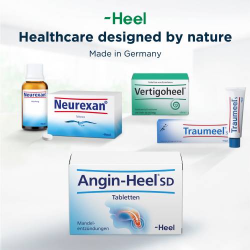 Die Angin Heel SD Tabletten werden zur natürlichen Behandlung von Mandelentzündungen angewendet. Die Tabletten enthalten eine Kombination aus verschiedenen homöopathischen Grundstoffen aus dem Pflanzen-, Mineral- und Tierreich. Durch diese Wirkstoffkombination kommt es zu einer Aktivierung und Normalisierung der körpereigenen Abwehrkräfte. Die homöopathische Zusammensetzung ist in der Lage die körpereigene Abwehr zu steigern und die häufigsten Symptome bei eitrigen Mandelentzündungen zu lindern. Die Angin Heel SD Tabletten schaffen Linderung bei Halsschmerzen, Schluckbeschwerden und einem geröteten Rachen.