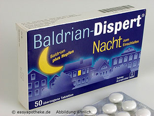 Die Baldrian Dispert Nacht Tabletten werden zur Erleichterung des Einschlafens bei nervös bedingten Schlafstörungen angewendet. Die Tabletten enthalten eine Kombination der beiden pflanzlichen Wirkstoffe Baldrian und Hopfen. Diese Kombination der Wirkstoffe verfügt über beruhigende, krampflösende und schlaffördernde Eigenschaften. Die Wirkstoffe unterstützen sich gegenseitig in ihren Wirkungen, wodurch es zu mehr innerer Ruhe und Entspannung kommt. Die Baldrian Dispert Nacht Tabletten sind in der Lage Nervosität und Spannungen zu lösen und so ein entspanntes Einschlafen zu fördern.