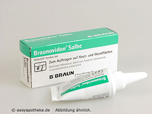 Die Braunovidon Salbe wird zur äußerlichen Behandlung von entzündlichen Verletzungen und Erkrankungen der Haut angewendet. Die Salbe enthält den Wirkstoff Povidon Jod. Sobald der Wirkstoff mit der Haut in Kontakt kommt, kommt es zu einer Abspaltung des eigentlich wirksamen Jods. Dieses Jod ist in der Lage das Keimwachstum auf der Haut zu hemmen und die Krankheitserreger abzutöten. Die Krankheitserreger verlieren ihre Funktion und sterben schließlich ab. Die Braunovidon Salbe eignet sich zur Behandlung von Decubitus, Ulcus crusis, oberflächlichen Wunden und Verbrennungen, infizierter und superinfizierten Dermatosen.