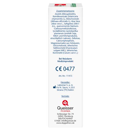 Das Medizinprodukt Doppelherz Bei Reizdarm enthält das Mineral Zeolith in Kombination mit Kamillen- und Eibischextrakt sowie Aloe Vera und wird zur unterstützenden Behandlung des Reizdarm-Syndroms mit folgenden Symptomen angewendet: