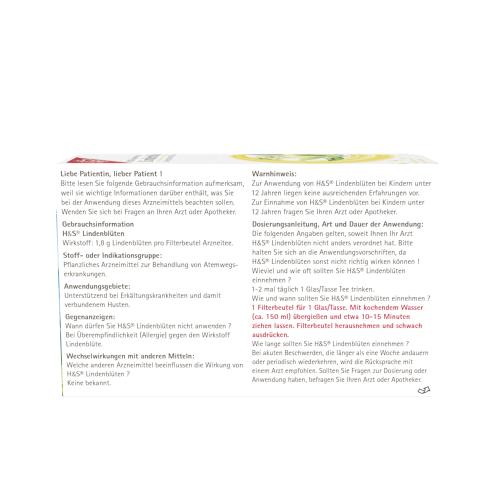Der H&S Lindenblüten Tee wird zur unterstützenden Behandlung von fiebrigen Erkältungen, leichten Krämpfen und Kopfschmerzen angewendet. Der Tee besteht aus getrockneten Lindenblütenblättern. Die Lindenblüten verfügen über krampflösende, schmerzstillende und entzündungshemmende Eigenschaften. Zu diesen positiven Eigenschaften kommt es durch die wertvollen Inhaltsstoffe der Blüten, wie zum Beispiel ätherische Öle, Flavonoide und Pflanzensäure. Der H&S Lindenblüten Tee nimmt allgemein einen positiven Einfluss auf das allgemeine Wohlbefinden.