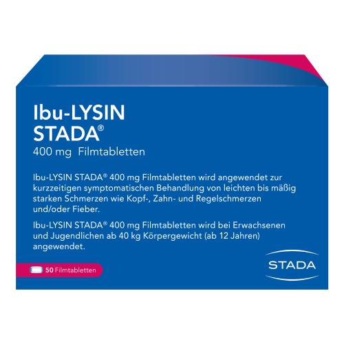 Ibu-LYSIN STADA® 400 mg Filmtabletten enthält den Wirkstoff Ibuprofen-Lysin. Lysin ist eine lebensnotwendige Aminosäure, welche der Körper selbst nicht herstellen kann. Nur durch Nahrung, wie z. B. tierische Eiweißprodukte, kann Lysin in den Körper gelangen.