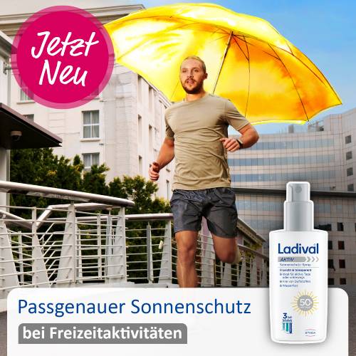 Ganzjähriger Sonnenschutz ist essenziell, da er nicht nur vor Sonnenbrand und sonnenbedingter Hautalterung schützt, sondern auch das Risiko an Hautkrebs zu erkranken reduziert. Um aktive Menschen, die sich gerne draußen aufhalten optimal zu versorgen, bietet Ladival® die Aktiv-Serie an. Diese wurde speziell für sportliche Aktivitäten im Freien entwickelt und ist besonders praktisch für unterwegs.