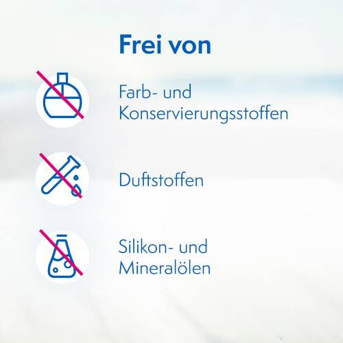 Spezielle Pflegestoffe pflegen und beruhigen die Haut und unterstützen die Hautbarriere. Die Flasche kann auf dem Kopf stehen – für eine vollständige Restentleerbarkeit.