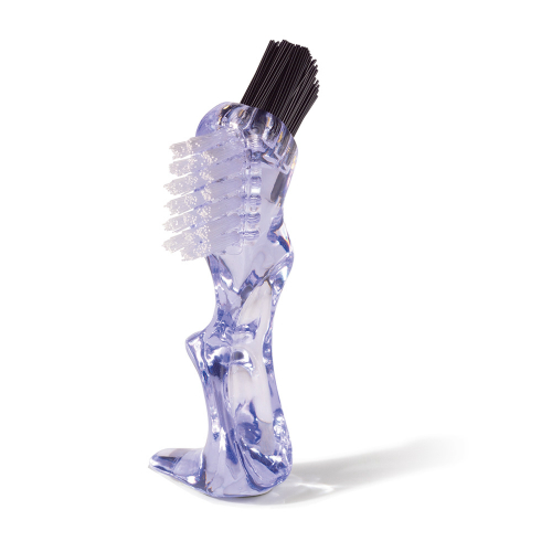 Ergonomisch geformte Prothesenbürste mit zwei Borstenfeldern