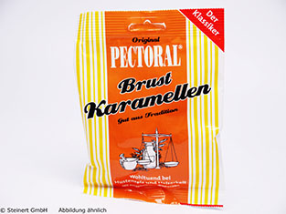 Original PECTORAL® Brust-Karamellen klassisch basieren auf der bewährten PECTORAL® Rezeptur mit Süßholzsaft und werden seit Jahrzehnten nach traditioneller Rezeptur zubereitet. Für diese Rezeptur werden nur besonders ausgewählte, hochwertige Ingredienzien verwendet. Das enthaltene Süßholz ist gerade bei Hustenreiz besonders wohltuend und lösend. Extratipp: Gießen Sie 2-3 Original PECTORAL® Brust-Karamellen klassisch in heißem Wasser auf und genießen Sie sie als Tee.