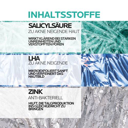 Mit dem EFFACLAR MIKRO-PEELING REINIGUNGSGEL werden starke Unreinheiten gemildert. Die leicht peelende Wirkung entfernt abgestorbene Hautzellen und beugt so der Neuentstehung von Mitessern vor. Das EFFACLAR Mikro-Peeling Reinigungsgel mit LHA, Salicylsäure, Glycerin und Zink öffnet die Poren und reduziert die Talgproduktion, sodass die Haut weniger ölig erscheint. Die Formel spendet der Haut Feuchtigkeit, beruhigt sie und mildert Rötungen. Für ein reineres Hautbild im Gesicht und auf dem Körper.
