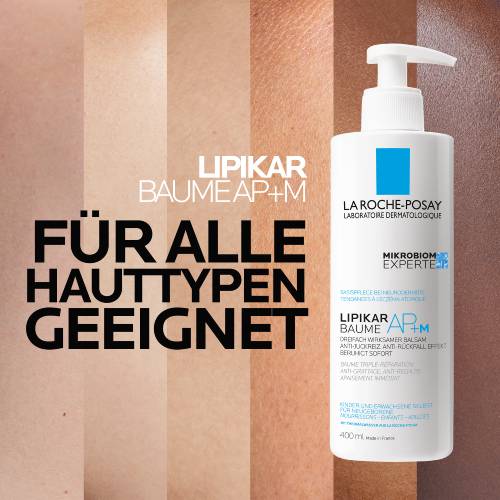 Die La Roche Posay LIPIKAR Baume AP+M Bodylotion für juckende, trockene und zu Neurodermitis neigende Haut einmal am Tag nach der Reinigung auf den Körper auftragen und sanft in die Haut einmassieren. Die rückfettende Feuchtigkeitspflege zieht schnell in die Haut ein und mildert sofort die Anzeichen von Juckreiz, Trockenheit sowie Spannungsgefühlen. Eine zusätzliche Feuchtigkeitspflege für trockene, zu Neurodermitis oder Allergien neigende Haut sind die rückfettende LIPIKAR Syndet AP+ Duschcreme, das LIPIKAR Dusch- und Badeöl AP+, der LIPIKAR Stick AP+ für unterwegs und die LIPIKAR Eczema Med Hautpflege.