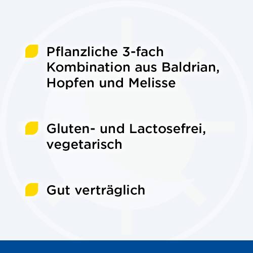Die Inhaltsstoffe entstammen verschiedenen Pflanzen und wirken als natürliches Gemisch. Baldrian und Hopfen wirken angstlösend, beruhigend und schlaffördernd. Die ätherischen Öle der Melisse lindern Nervosität und Spannungszustände.