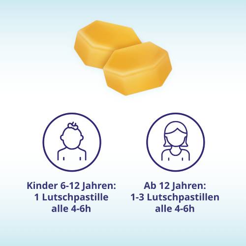 | Kinder von 6-12 Jahren | 1 Pastille | mehrmals täglich (max. 6 Pastillen pro Tag) | im Abstand von 4-6 Stunden, unabhängig von der Mahlzeit |